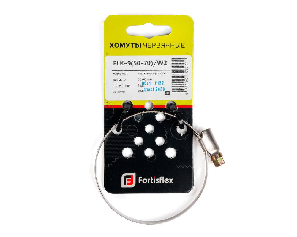 Хомуты червячные PLK-9 (50-70)/W2 (1шт.) (Fortisflex)